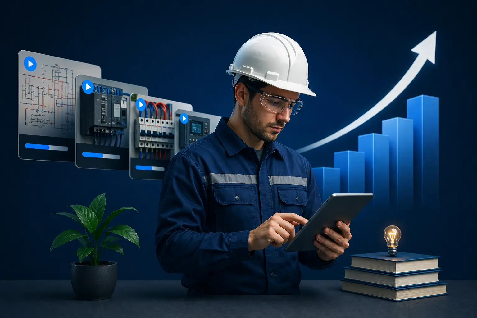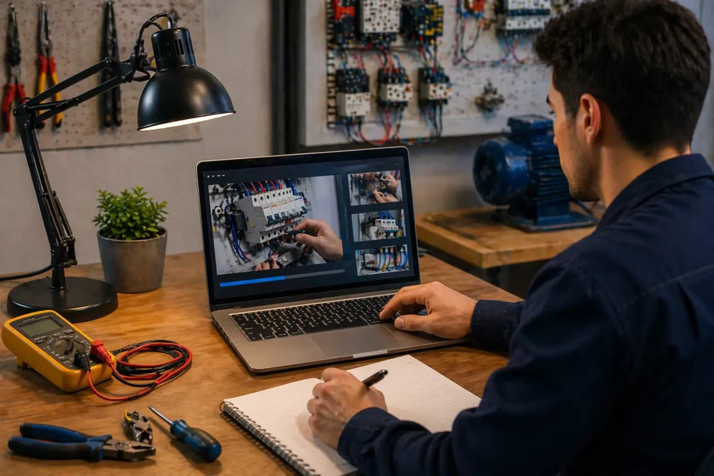Creamos contenido educativo práctico para ayudarte a desarrollar habilidades técnicas sólidas, mejorar tu desempeño laboral y avanzar con confianza en el área eléctrica e industrial. Accede a una plataforma diseñada para aprender de forma clara, progresiva y aplicada